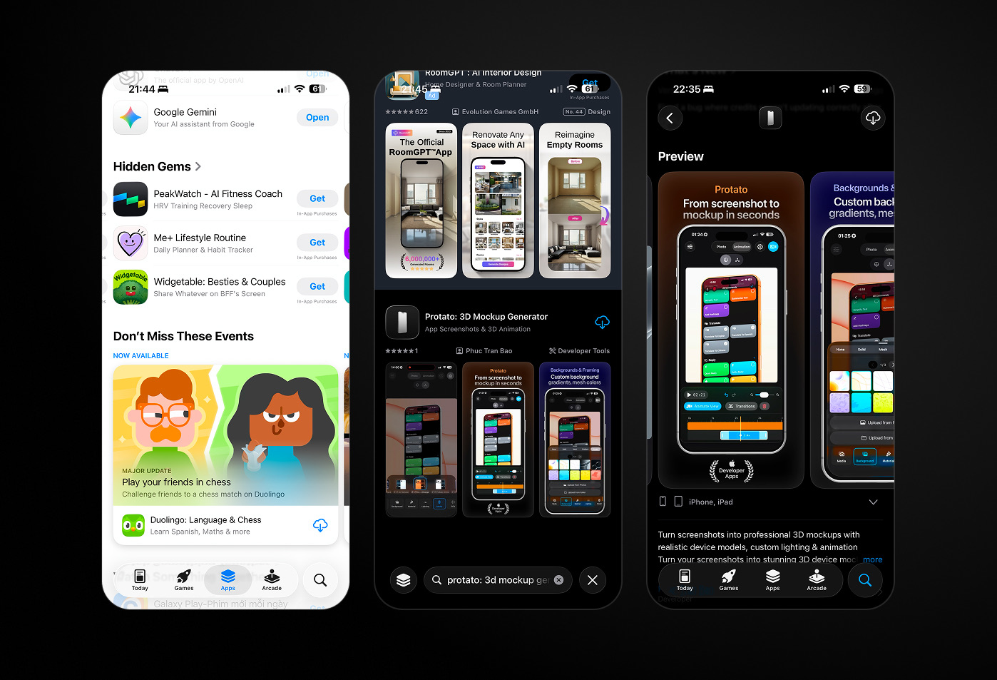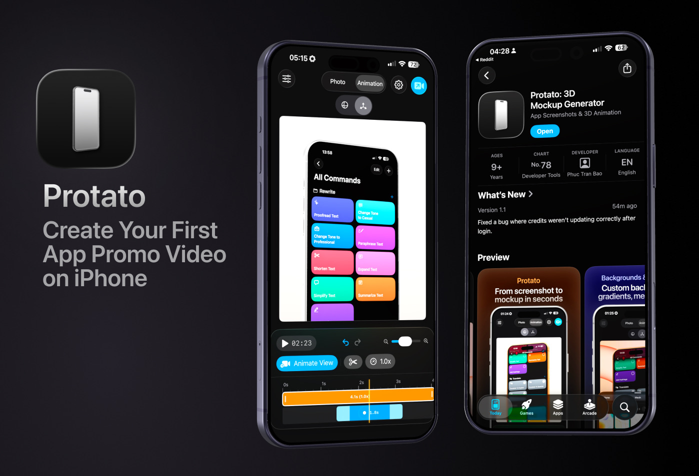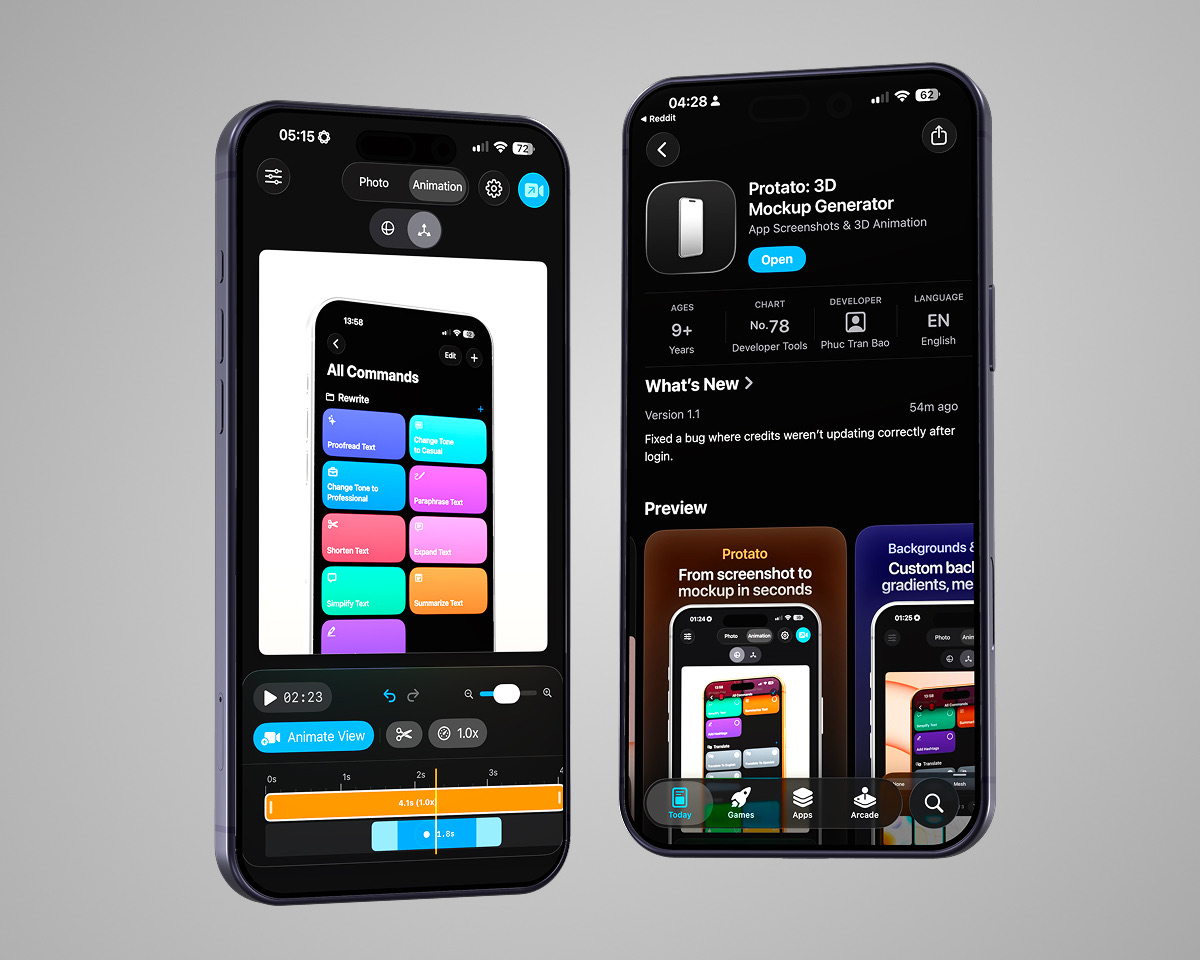 Open Protato, pick an iPhone model, upload your app's demo video, and try a simple rotation. See how lighting affects realism. Add a slow pan and export your first 4K video.